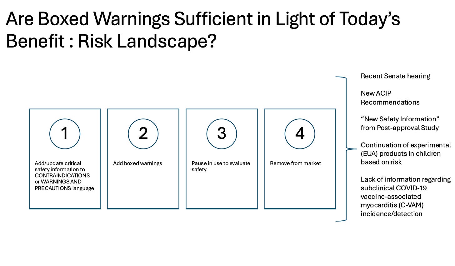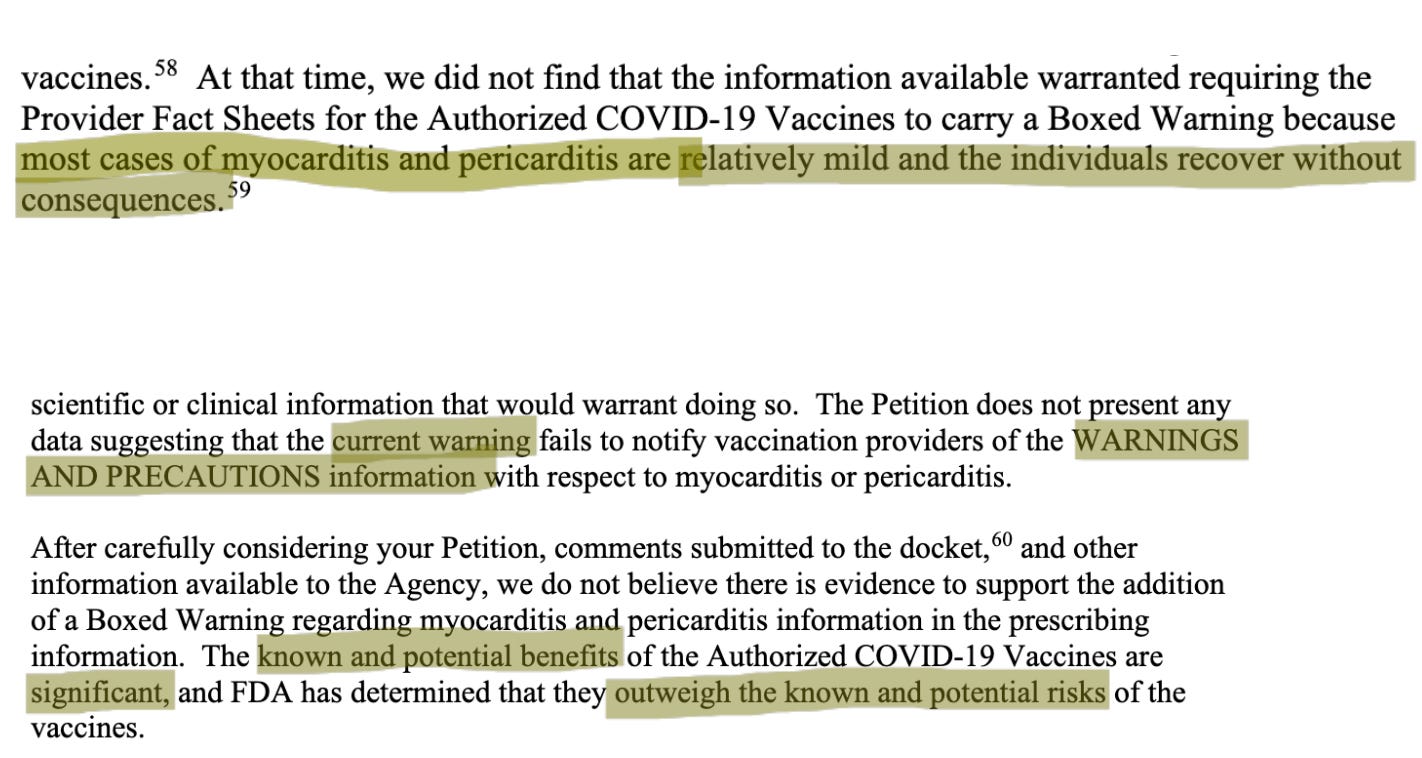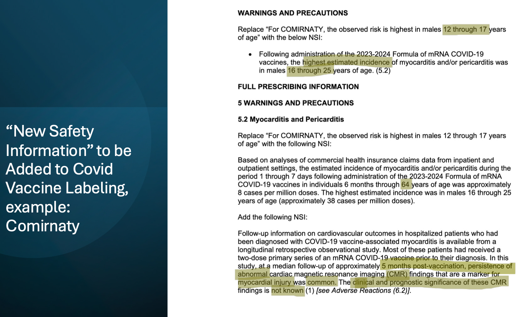 They ignored the 43,000+ serious adverse events she documented. They dismissed autopsy findings, CMR imaging studies showing persistent cardiac scarring, and even their own insurance claims data. The agency simply refused to act on the overwhelming body of evidence presented.